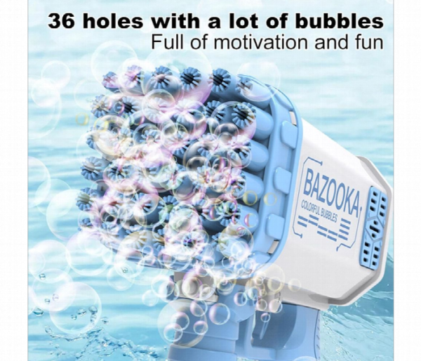 Bazooka 36-Hole Bubble Gun – High-output bubble blaster for nonstop fun, perfect for kids’ play and parties.
