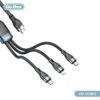 3-in-1 Multiport Design: Equipped with two USB-C connectors and one Lightning connector, this cable allows you to charge a variety of devices, including smartphones, tablets, and laptops, using a single cable.