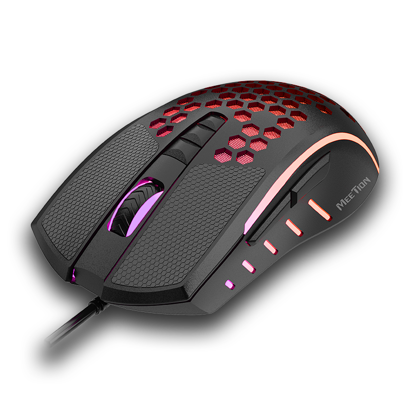 The Meetion GM015 is a lightweight, ergonomic gaming mouse designed to enhance your gaming experience. Its honeycomb hollow design reduces weight, making it ideal for fast-paced gaming sessions. The mouse features customizable RGB lighting, a high-precision sensor, and durable construction.