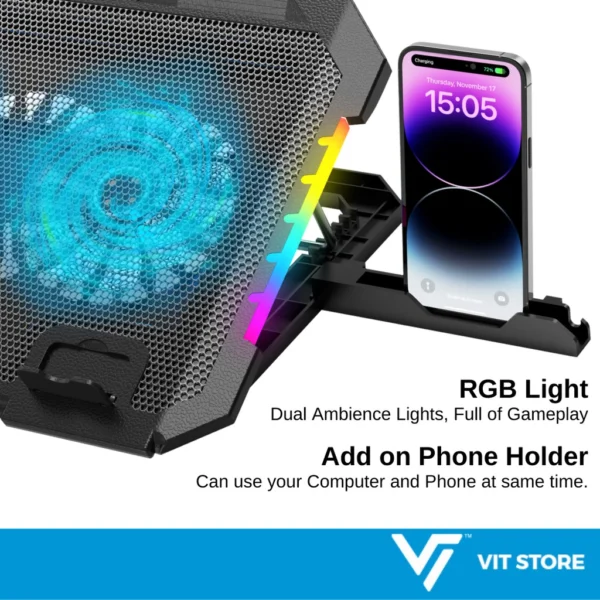 Dual Fan Cooling System: Equipped with two 140mm fans, the NCP-218 provides effective heat dissipation to prevent your laptop from overheating.