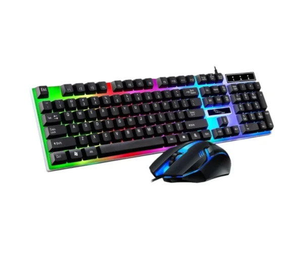 The XK-01 set includes a full-sized 104-key keyboard and a matching wired optical mouse, both featuring colorful RGB backlighting. This combination provides a visually appealing setup without compromising on performance for everyday tasks and light gaming.