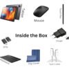 Feature Detail Display 11‑inch IPS / “In‑cell” LCD, resolution 1280 × 800 pixels. Processor Octa‑core CPU, up to 2.0 GHz. Operating System Android 14 Memory & Storage 8 GB RAM, 512 GB internal storage. Expandable via micro‑SD. Network / Connectivity Dual SIM support. 5G connectivity in some variants / 5G WiFi mentioned. Some listings mention 4G dual SIM with 5G WiFi. Battery Large capacity 8000 mAh battery. Cameras Rear: ~13 MP; Front: ~8 MP. Ports / Extras USB‑C for charging/data. Comes with accessories like a case/cover, keyboard, mouse, touch pen, flip cover, screen protector.