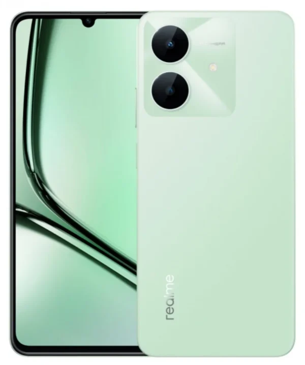 Realme Note 60x (3GB RAM, 64GB Storage) features a 6.74″ 90Hz HD+ display, Unisoc T612 processor, 5000mAh battery, 8MP rear camera, Android 14, and IP54 splash resistance — offering smooth performance and durable design at an affordable price.