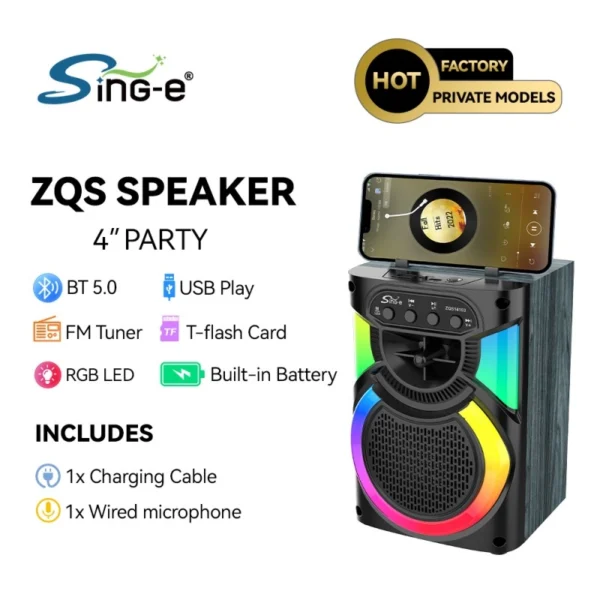 Designed with a modern look and available in multiple vibrant colors, the ZQS14103 combines style, portability, and performance. Whether you’re at a picnic, party, or just relaxing at home, this speaker keeps the music playing seamlessly with Bluetooth, USB, TF card, and AUX input options.