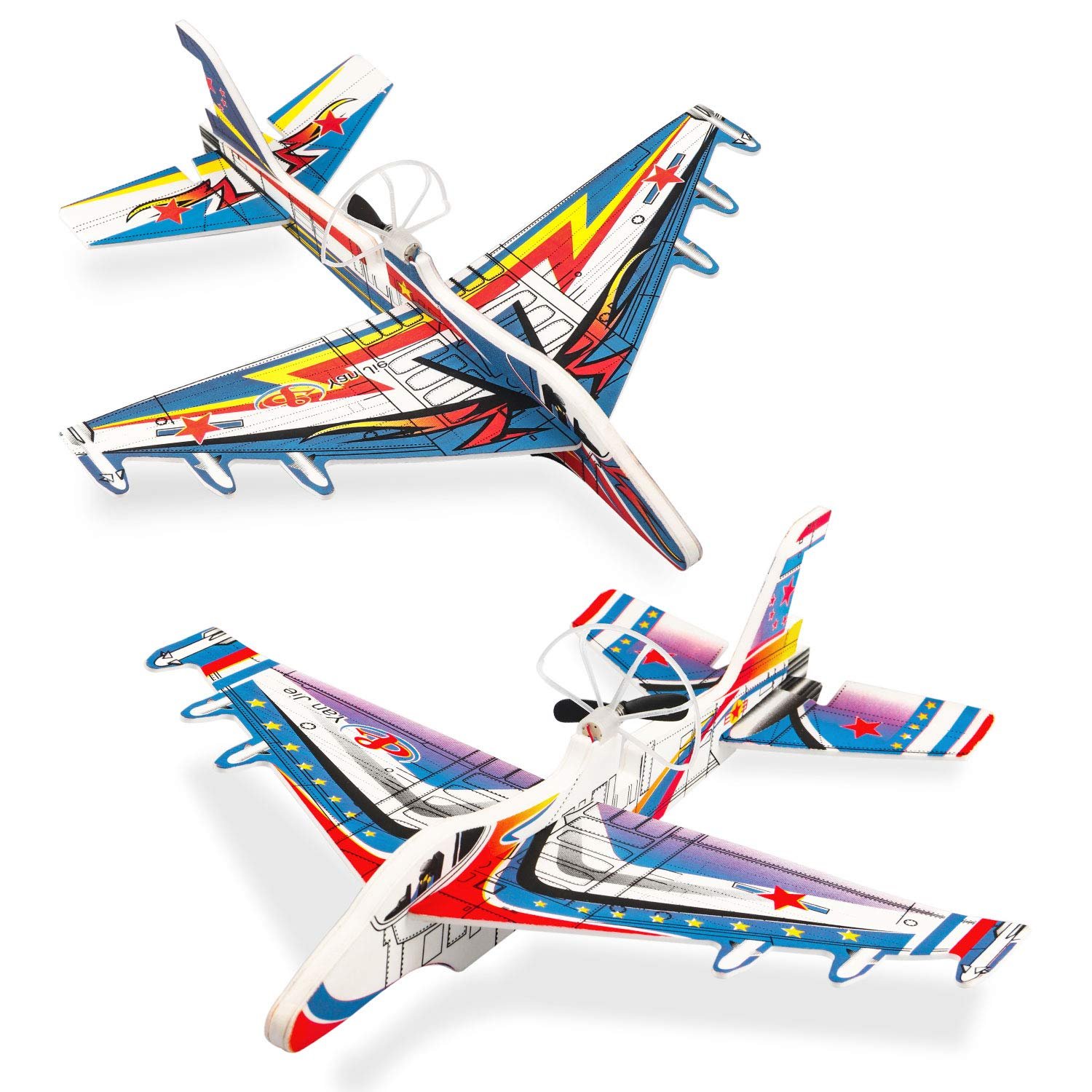 Designed as a hand-launch / throw glider airplane toy; some models have a small electric motor / USB charging to help with propeller launch or extended flight.